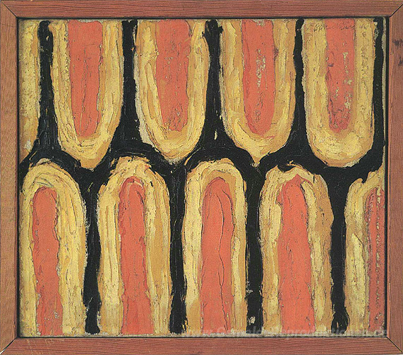 Wir bieten Ihnen eine handgefertigte Reproduktion auf Leinwand des berühmten Kunstwerks 'Das Dicks' von Forrest Bess, aus dem Reproduktionsmuseum.