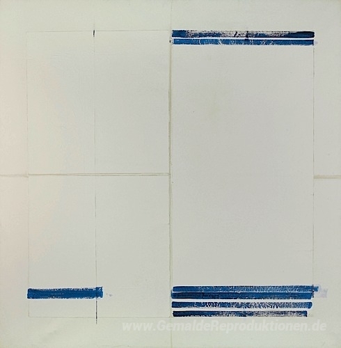 Wir bieten Ihnen eine handgefertigte Reproduktion auf Leinwand des berühmten Kunstwerks 'Depli bleu (II)' von Jean Degottex, aus dem Reproduktionsmuseum.