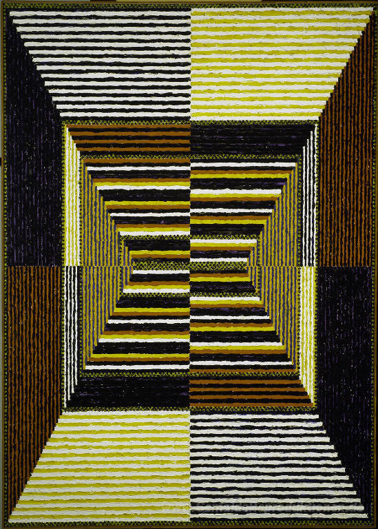 Wir bieten Ihnen eine handgefertigte Reproduktion auf Leinwand des berühmten Kunstwerks 'Die Acrobatic Rechteck, Per Eleven' von Alfred Jensen, aus dem Reproduktionsmuseum.