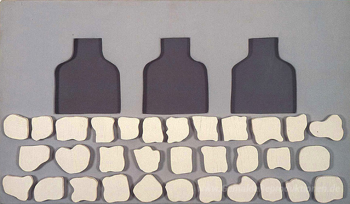 Wir bieten Ihnen eine handgefertigte Reproduktion auf Leinwand des berühmten Kunstwerks 'Die drei Türen' von Forrest Bess, aus dem Reproduktionsmuseum.