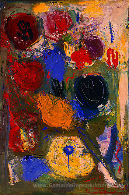 Wir bieten Ihnen eine handgefertigte Reproduktion auf Leinwand des berühmten Kunstwerks 'Die dritte Hand' von Hans Hofmann, aus dem Reproduktionsmuseum.