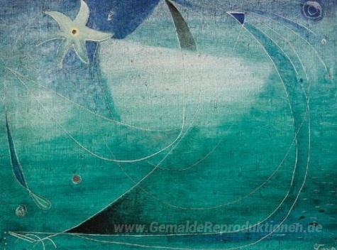Wir bieten Ihnen eine handgefertigte Reproduktion auf Leinwand des berühmten Kunstwerks 'Die Tiefe des Meeres' von Tihamer Gyarmathy, aus dem Reproduktionsmuseum.