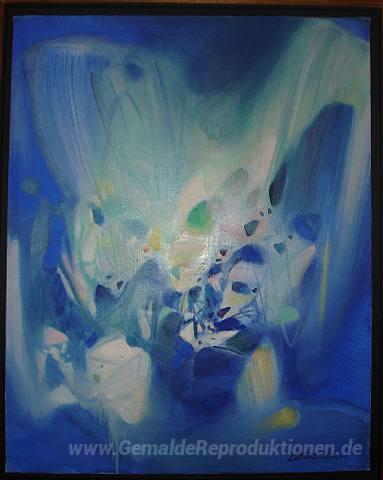 Wir bieten Ihnen eine handgefertigte Reproduktion auf Leinwand des berühmten Kunstwerks 'Dominant Bleu' von Chu Teh-Chun, aus dem Reproduktionsmuseum.