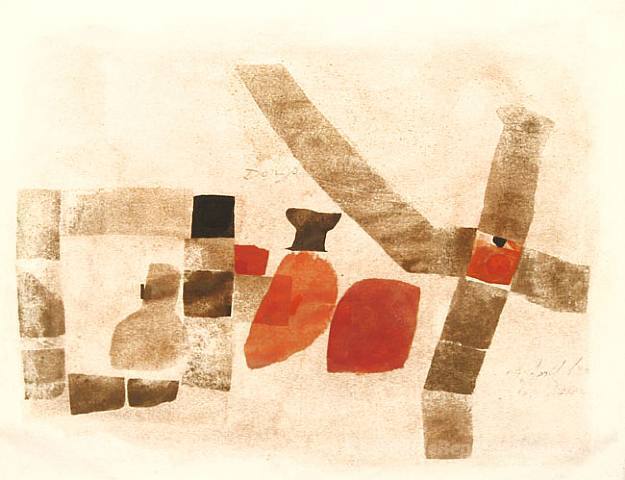 Wir bieten Ihnen eine handgefertigte Reproduktion auf Leinwand des berühmten Kunstwerks 'Dongo' von Julius Bissier, aus dem Reproduktionsmuseum.