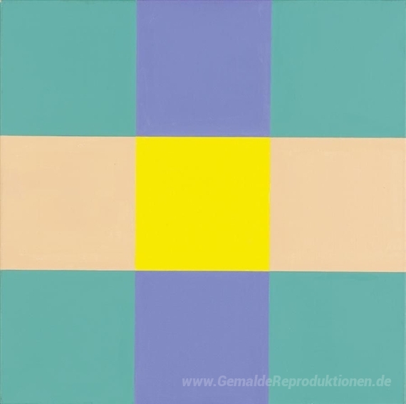 Wir bieten Ihnen eine handgefertigte Reproduktion auf Leinwand des berühmten Kunstwerks 'Drei Horizontal Gruppen mit gelben Zentrum Variation E' von Richard Paul Lohse, aus dem Reproduktionsmuseum.