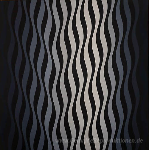 Wir bieten Ihnen eine handgefertigte Reproduktion auf Leinwand des berühmten Kunstwerks 'Drift 2' von Bridget Riley, aus dem Reproduktionsmuseum.