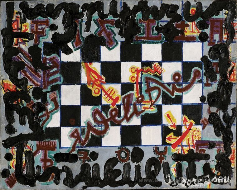 Wir bieten Ihnen eine handgefertigte Reproduktion auf Leinwand des berühmten Kunstwerks 'Echiquier brodé 42' von Isidore Isou, aus dem Reproduktionsmuseum.