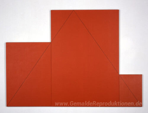 Wir bieten Ihnen eine handgefertigte Reproduktion auf Leinwand des berühmten Kunstwerks 'Ein Dreieck innerhalb von drei Rechtecke' von Robert Mangold, aus dem Reproduktionsmuseum.