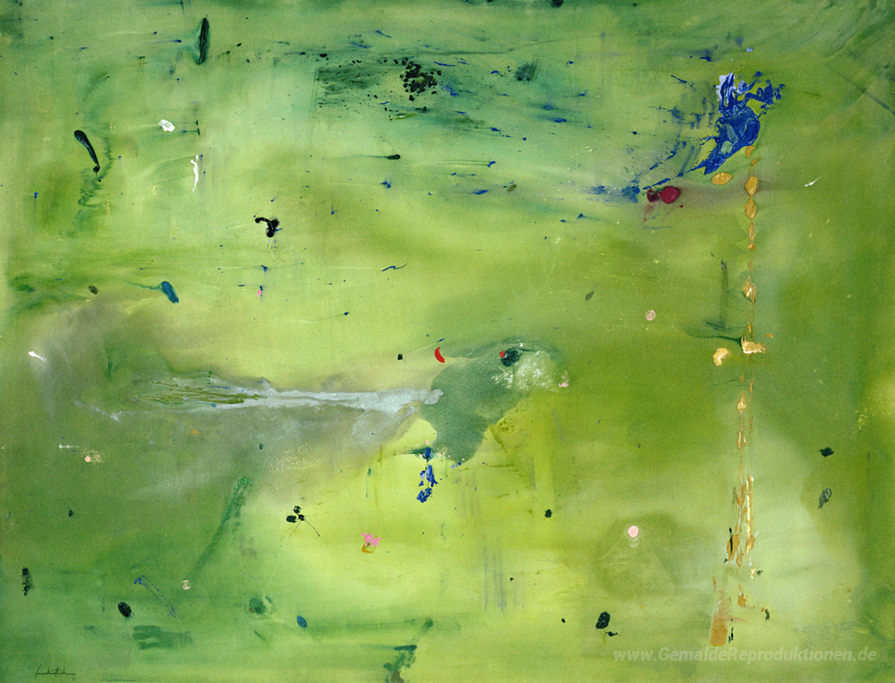 Wir bieten Ihnen eine handgefertigte Reproduktion auf Leinwand des berühmten Kunstwerks 'Ein Grün Thought in einem Grünton' von Helen Frankenthaler, aus dem Reproduktionsmuseum.