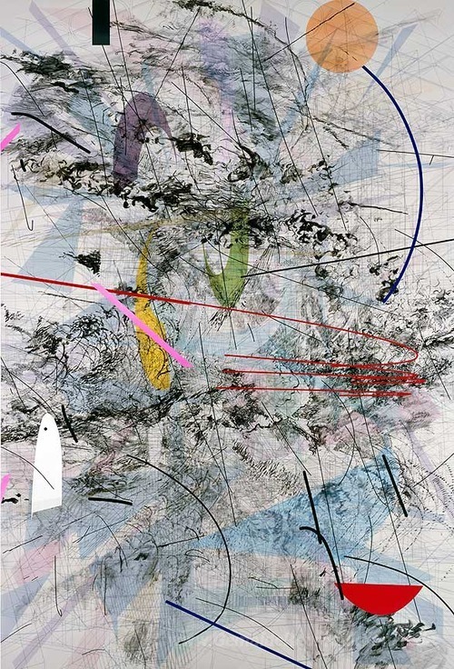 Wir bieten Ihnen eine handgefertigte Reproduktion auf Leinwand des berühmten Kunstwerks 'Einfach Dunkel' von Julie Mehretu, aus dem Reproduktionsmuseum.