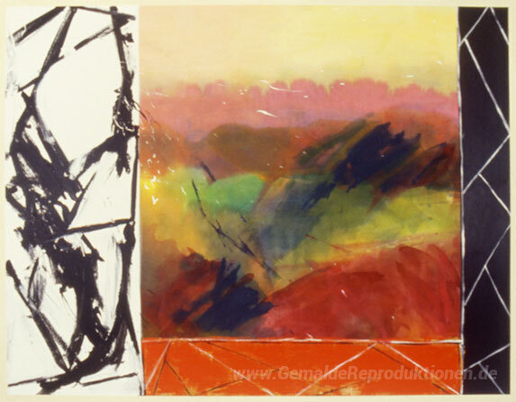 Wir bieten Ihnen eine handgefertigte Reproduktion auf Leinwand des berühmten Kunstwerks 'Eisenbahn-Tor' von Ronnie Landfield, aus dem Reproduktionsmuseum.