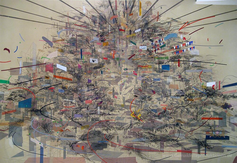 Wir bieten Ihnen eine handgefertigte Reproduktion auf Leinwand des berühmten Kunstwerks 'Empirische Konstruktion: Istanbul' von Julie Mehretu, aus dem Reproduktionsmuseum.