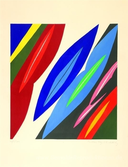 Wir bieten Ihnen eine handgefertigte Reproduktion auf Leinwand des berühmten Kunstwerks 'Farblitho 1968-2 (NOR)' von Ernst Wilhelm Nay, aus dem Reproduktionsmuseum.