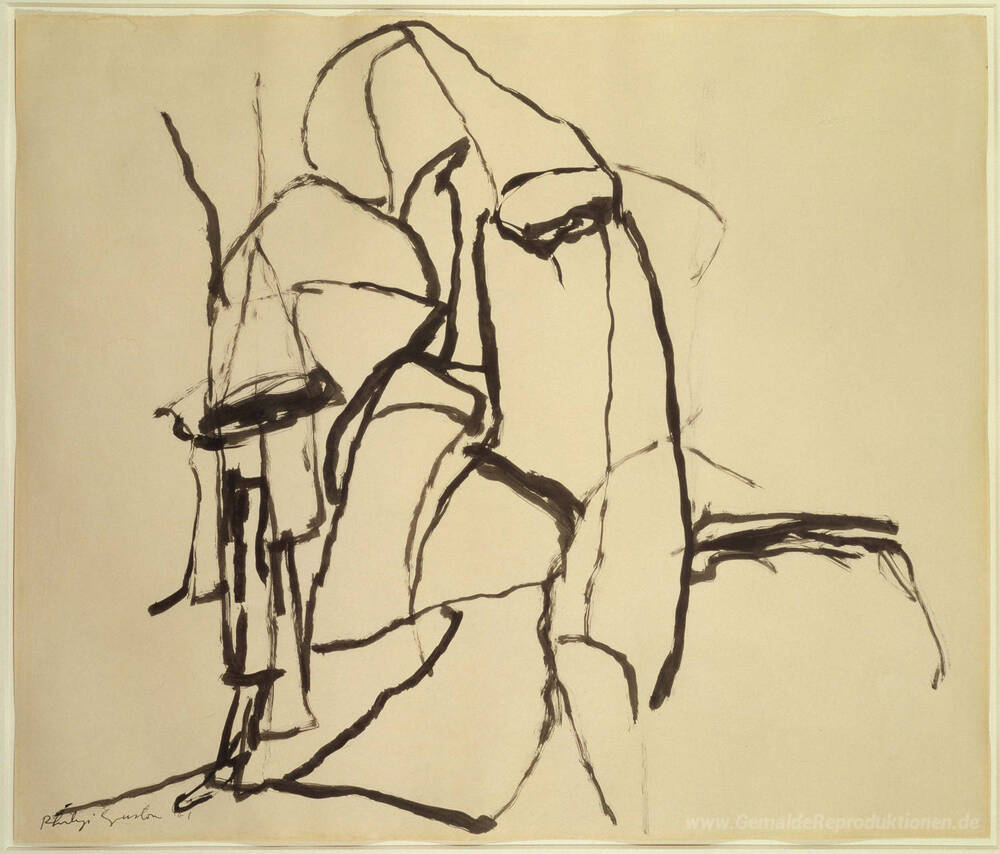 Wir bieten Ihnen eine handgefertigte Reproduktion auf Leinwand des berühmten Kunstwerks 'Feier' von Philip Guston, aus dem Reproduktionsmuseum.
