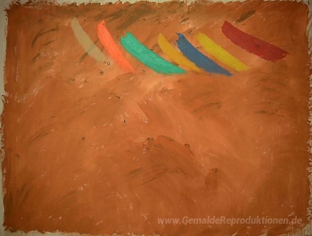 Wir bieten Ihnen eine handgefertigte Reproduktion auf Leinwand des berühmten Kunstwerks 'Flöte Passage' von Jack Bush, aus dem Reproduktionsmuseum.