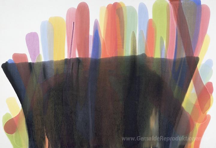 Wir bieten Ihnen eine handgefertigte Reproduktion auf Leinwand des berühmten Kunstwerks 'Floral V' von Morris Louis, aus dem Reproduktionsmuseum.