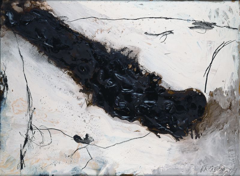 Wir bieten Ihnen eine handgefertigte Reproduktion auf Leinwand des berühmten Kunstwerks 'Fluss' von Emil Schumacher, aus dem Reproduktionsmuseum.