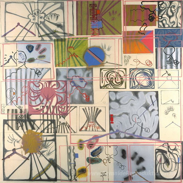 Wir bieten Ihnen eine handgefertigte Reproduktion auf Leinwand des berühmten Kunstwerks 'Frage der Identität I' von Bernard Cohen, aus dem Reproduktionsmuseum.