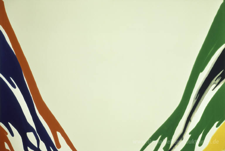 Willkommen in unserer exquisite Sammlung von Ölgemälden, in der jedes Kunstwerk eine Geschichte erzählt. Das beeindruckende Gemälde Gamma Delta, geschaffen von dem renommierten Künstler Morris Louis, verkörpert die Essenz des Farbblocks und des Abstrakten Expressionismus. Louis, bekannt für seine innovative Technik des „Pouring“, nutzt die fließenden Eigenschaften der Farbe, um lebendige und dynamische Kompositionen zu schaffen, die den Betrachter fesseln.