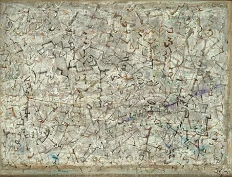 Wir bieten Ihnen eine handgefertigte Reproduktion auf Leinwand des berühmten Kunstwerks 'Geographie von Phantasy' von Mark Tobey, aus dem Reproduktionsmuseum.