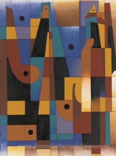 Wir bieten Ihnen eine handgefertigte Reproduktion auf Leinwand des berühmten Kunstwerks 'Geometrica en la forma' von Carlos Merida, aus dem Reproduktionsmuseum.