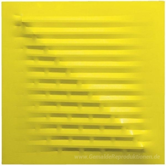 Wir bieten Ihnen eine handgefertigte Reproduktion auf Leinwand des berühmten Kunstwerks 'Giallo' von Agostino Bonalumi, aus dem Reproduktionsmuseum.