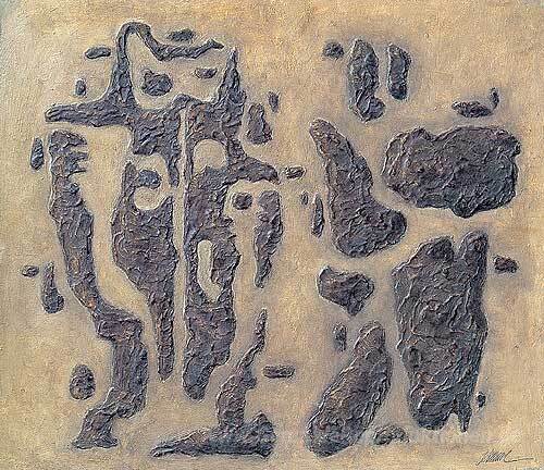 Wir bieten Ihnen eine handgefertigte Reproduktion auf Leinwand des berühmten Kunstwerks 'Gilgamesch und Enkidu' von Willi Baumeister, aus dem Reproduktionsmuseum.