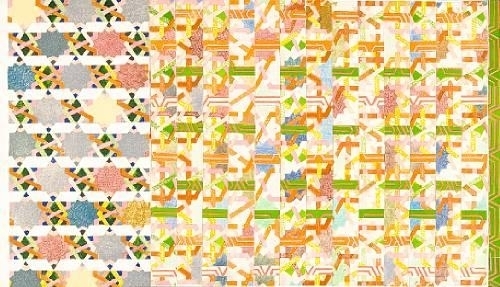 Wir bieten Ihnen eine handgefertigte Reproduktion auf Leinwand des berühmten Kunstwerks 'Gitter' von Joyce Kozloff, aus dem Reproduktionsmuseum.
