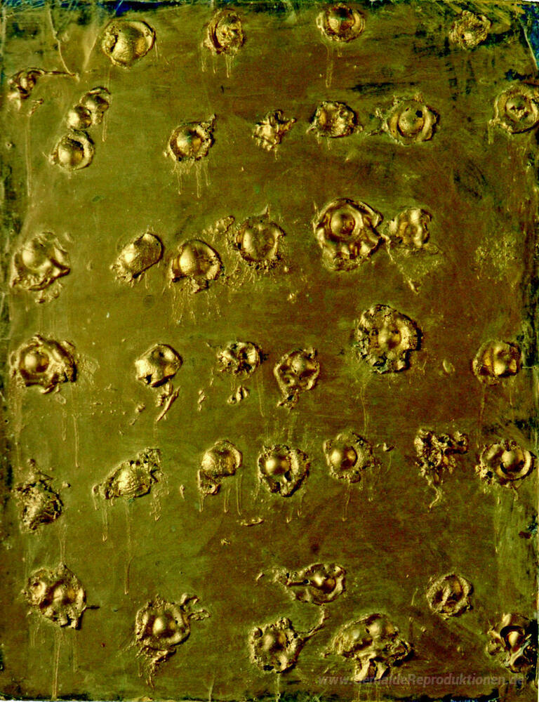 Wir bieten Ihnen eine handgefertigte Reproduktion auf Leinwand des berühmten Kunstwerks 'Goldene Constellation' von Horia Damian, aus dem Reproduktionsmuseum.