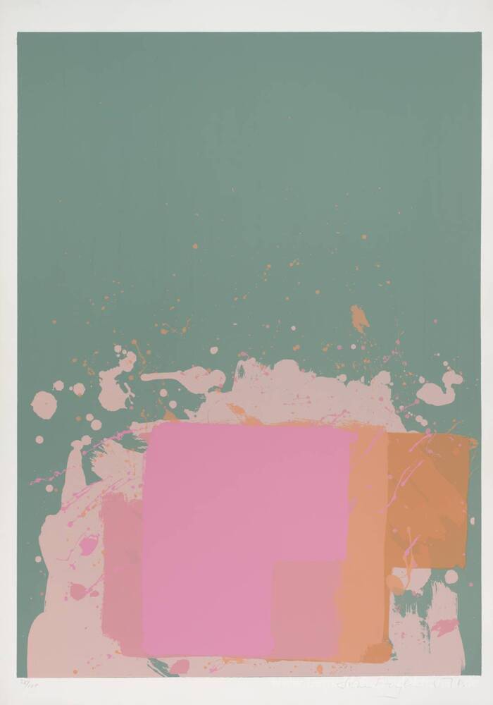 Wir bieten Ihnen eine handgefertigte Reproduktion auf Leinwand des berühmten Kunstwerks 'Grün, Orange, Rosa' von John Hoyland, aus dem Reproduktionsmuseum.