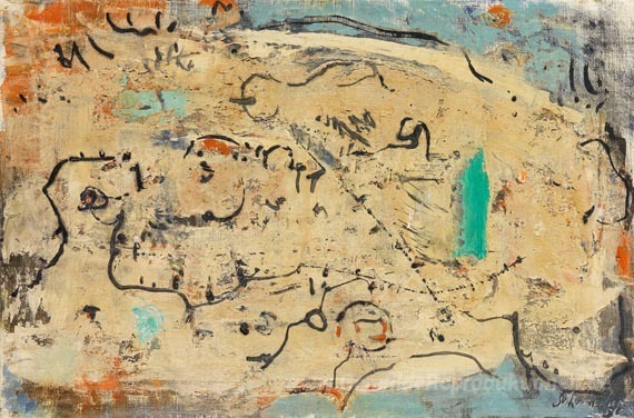 Willkommen in der faszinierenden Welt der Ölgemälde, wo Kreativität und Emotion in harmonischen Kompositionen verschmelzen. Unter den herausragenden Künstlern unserer Sammlung sticht Emil Schumacher hervor. Sein Werk Grüner Akzent verkörpert die Meisterschaft der abstrakten Malerei und verbindet dynamische Farbkombinationen mit kraftvollen Pinselstrichen, die das Auge des Betrachters fesseln.