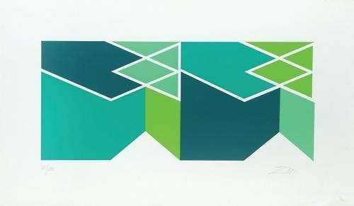 Wir bieten Ihnen eine handgefertigte Reproduktion auf Leinwand des berühmten Kunstwerks 'Green Composition' von Larry Zox, aus dem Reproduktionsmuseum.