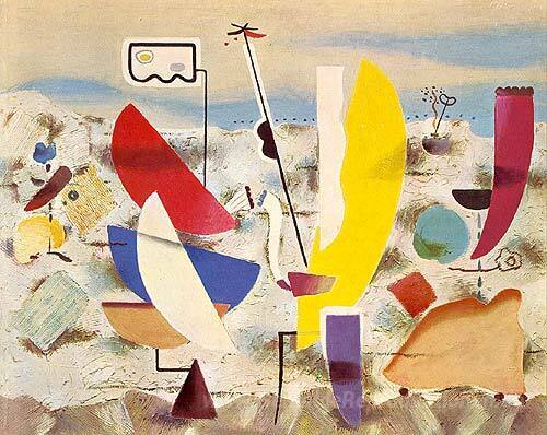 Wir bieten Ihnen eine handgefertigte Reproduktion auf Leinwand des berühmten Kunstwerks 'Happy Day' von Willi Baumeister, aus dem Reproduktionsmuseum.