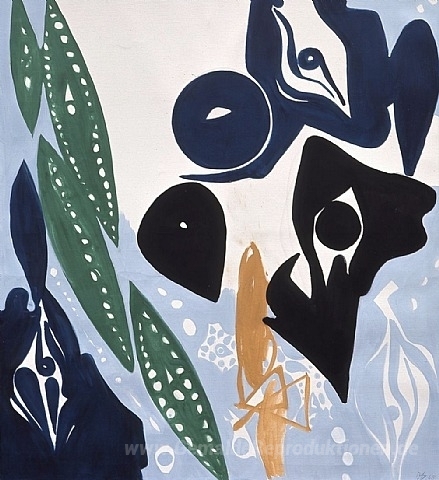 Wir bieten Ihnen eine handgefertigte Reproduktion auf Leinwand des berühmten Kunstwerks 'Hellblau im Licht' von Ernst Wilhelm Nay, aus dem Reproduktionsmuseum.