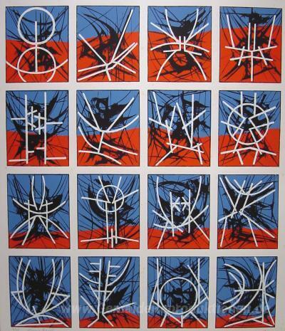Wir bieten Ihnen eine handgefertigte Reproduktion auf Leinwand des berühmten Kunstwerks 'Hieroglyphen' von Jimmy Ernst, aus dem Reproduktionsmuseum.