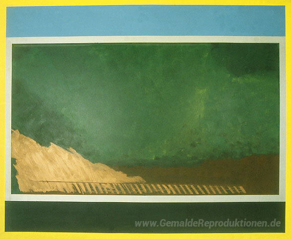 Wir bieten Ihnen eine handgefertigte Reproduktion auf Leinwand des berühmten Kunstwerks 'Himmel und Erde' von Ronnie Landfield, aus dem Reproduktionsmuseum.
