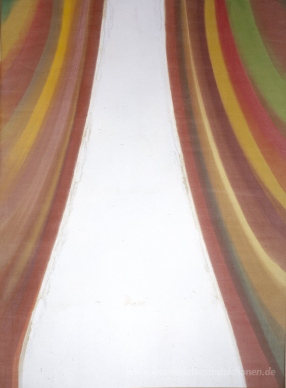 Wir bieten Ihnen eine handgefertigte Reproduktion auf Leinwand des berühmten Kunstwerks 'Hoch' von Morris Louis, aus dem Reproduktionsmuseum.