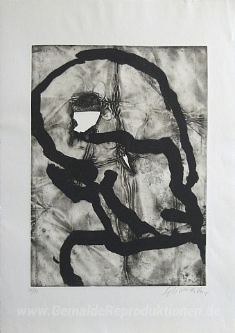 Wir bieten Ihnen eine handgefertigte Reproduktion auf Leinwand des berühmten Kunstwerks 'Hommage à Picasso' von Emil Schumacher, aus dem Reproduktionsmuseum.