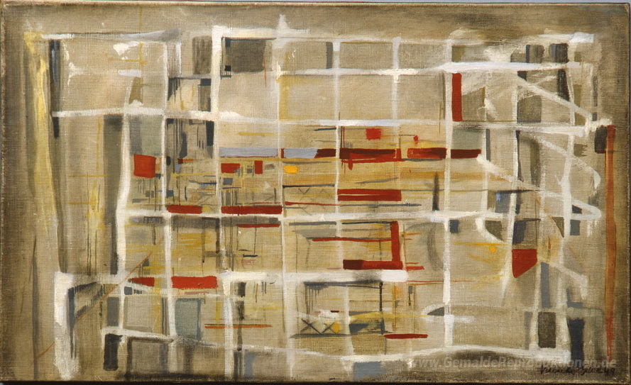 Wir bieten Ihnen eine handgefertigte Reproduktion auf Leinwand des berühmten Kunstwerks 'Interieur à la spirale' von Maria Helena Vieira da Silva, aus dem Reproduktionsmuseum.