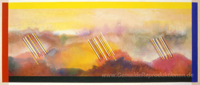 Wir bieten Ihnen eine handgefertigte Reproduktion auf Leinwand des berühmten Kunstwerks 'Jünger als der Sun' von Ronnie Landfield, aus dem Reproduktionsmuseum.