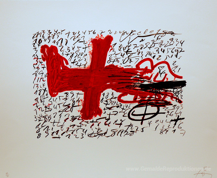 Wir bieten Ihnen eine handgefertigte Reproduktion auf Leinwand des berühmten Kunstwerks 'Jambe et chiffres' von Antoni Tapies, aus dem Reproduktionsmuseum.