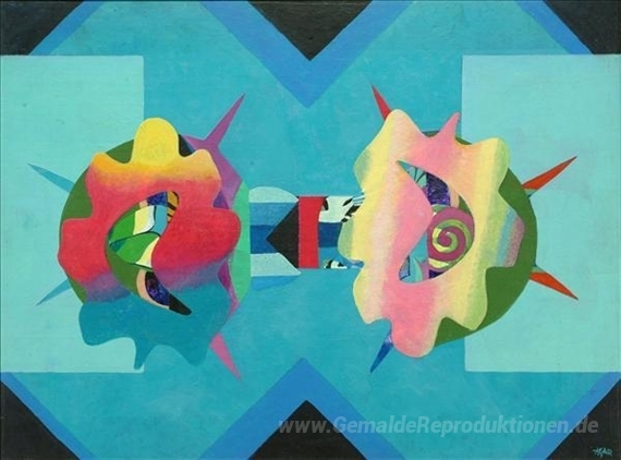 Wir bieten Ihnen eine handgefertigte Reproduktion auf Leinwand des berühmten Kunstwerks 'Kampf der Blumen' von Eileen Agar, aus dem Reproduktionsmuseum.