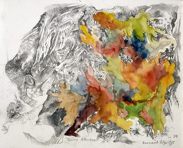Wir bieten Ihnen eine handgefertigte Reproduktion auf Leinwand des berühmten Kunstwerks 'Kleine Attacken' von Bernard Schultze, aus dem Reproduktionsmuseum.