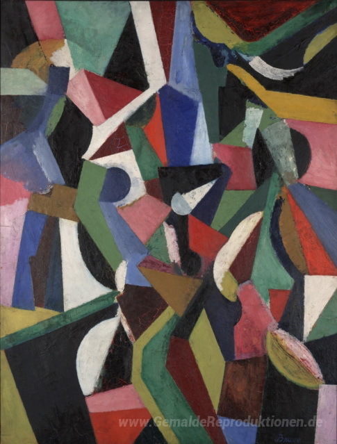 Wir bieten Ihnen eine handgefertigte Reproduktion auf Leinwand des berühmten Kunstwerks 'Komposition I' von Patrick Henry Bruce, aus dem Reproduktionsmuseum.