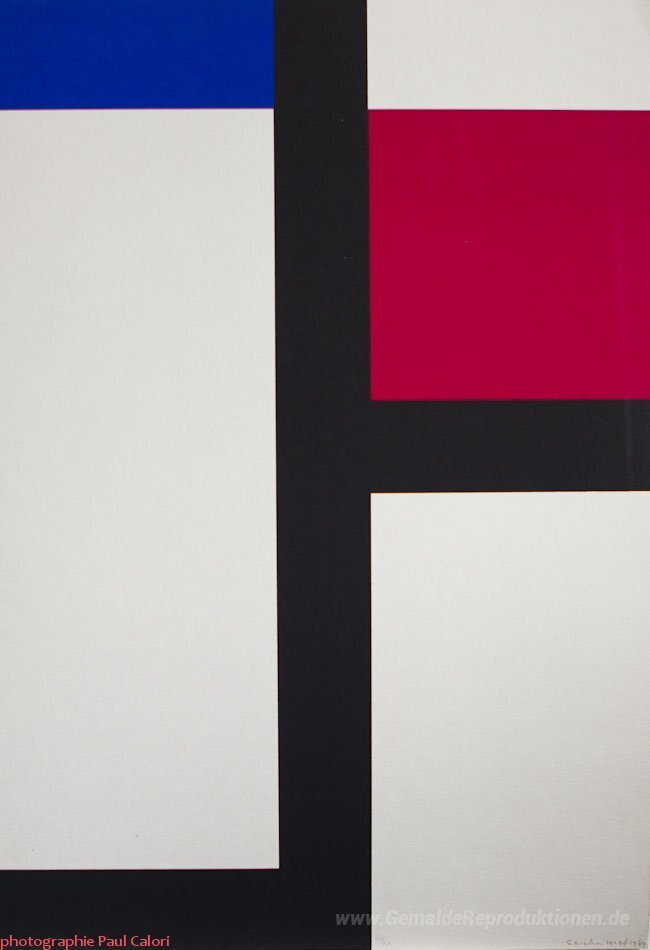 Wir bieten Ihnen eine handgefertigte Reproduktion auf Leinwand des berühmten Kunstwerks 'Komposition II' von Michel Seuphor, aus dem Reproduktionsmuseum.