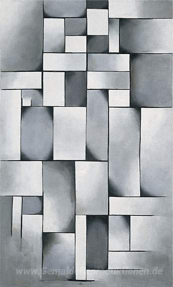 Wir bieten Ihnen eine handgefertigte Reproduktion auf Leinwand des berühmten Kunstwerks 'Komposition in Grau (Rag Time)' von Theo van Doesburg, aus dem Reproduktionsmuseum.