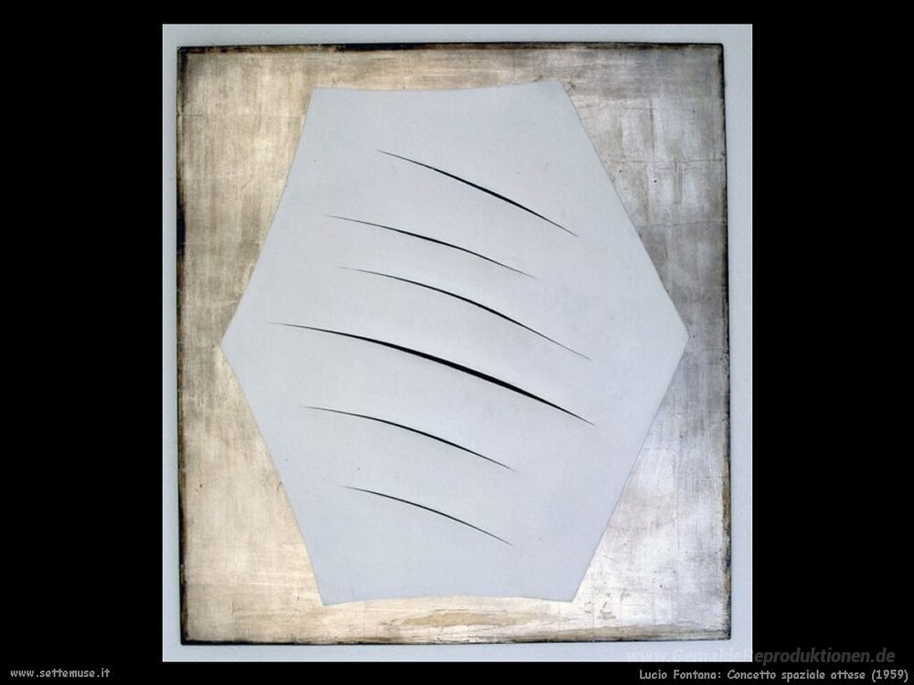 Wir bieten Ihnen eine handgefertigte Reproduktion auf Leinwand des berühmten Kunstwerks 'Konzept Spatiale' von Lucio Fontana, aus dem Reproduktionsmuseum.