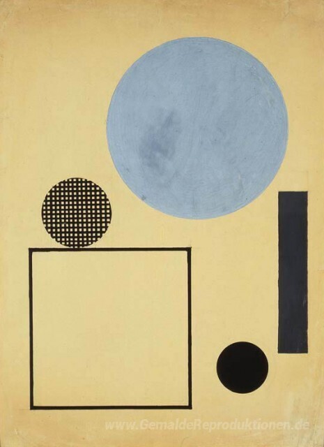 Wir bieten Ihnen eine handgefertigte Reproduktion auf Leinwand des berühmten Kunstwerks 'Kreis und Quadrat in Space' von Henryk Berlewi, aus dem Reproduktionsmuseum.
