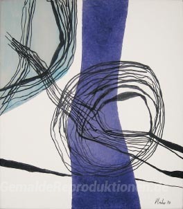 Wir bieten Ihnen eine handgefertigte Reproduktion auf Leinwand des berühmten Kunstwerks 'Kreisend vor Violett' von Fritz Winter, aus dem Reproduktionsmuseum.