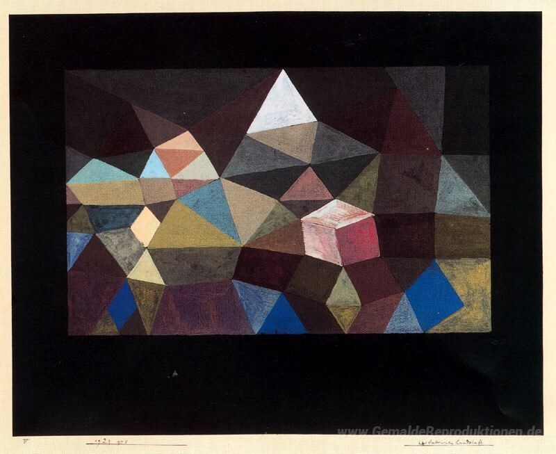 Wir bieten Ihnen eine handgefertigte Reproduktion auf Leinwand des berühmten Kunstwerks 'Kristalline Landschaft' von Paul Klee, aus dem Reproduktionsmuseum.
